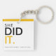Celebrate a monumental achievement with this "She Did It!" graduation acrylic keychain. Featuring a bold and inspiring message in striking yellow and black typography, this keychain is the perfect way to commemorate a graduation. The elegant design includes the year of graduation and space for the graduate's name, making it a unique and personal keepsake. Attach it to keys, a backpack, or a purse to carry a reminder of this incredible accomplishment wherever you go. This keychain is a fantastic graduation gift for her, celebrating her hard work and success.