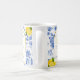 The She Found Her Main Squeeze bridal shower coffee mug features blue flowers, yellow lemons, and black and yellow text.