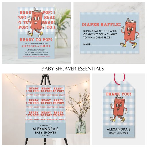 She Is Ready To Pop Blue Gingham Kawaii Soda Diaper Raffle Enclosure Card