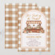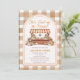 This “She’s Fresh Off the Market” fall bridal shower invitation features a warm caramel gingham background, pumpkin harvest market stand, and romantic autumn florals — perfect for a September, October, or November celebration.
