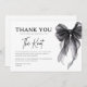 The minimalist black-and-white design reflects today’s most popular bow-themed and modern bridal aesthetics, making it easy to coordinate with your shower décor, invitations, signage, and tableware. Thoughtfully styled and easy to personalize, this thank you card feels refined, heartfelt, and effortlessly elegant.