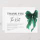 The minimalist green-and-white design reflects today’s most popular bow-themed and modern bridal aesthetics, making it easy to coordinate with your shower décor, invitations, signage, and tableware. Thoughtfully styled and easy to personalize, this thank you card feels refined, heartfelt, and effortlessly elegant.