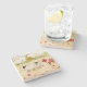 Adorable scene with a collie gathering sheep on this old world style coaster.