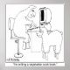 Ett får på skrivmaskinen säger till en annan: "Jag skriver en vegetarisk kock bok."