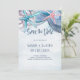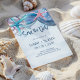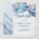 Strandtema bröllop Spara datumet har vattenfärg sjöstjärna och snigelskal med handskriven typsnitt i skifferblå. Perfekt för hav, kust, tropiska och nautiska teman. Konst av KL Stock