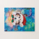 Sheltie Breed Hund jul har en vattenfärg på en Sheltie med en röd julklapp, en röd julklapp och en galaxisk vattenfärg.