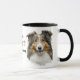 "Sheltie kisses fixa allt" deklarerar det här söta mugg för Shetland Sheepdog ägare. Bilden på vardera sidan är en vattenfärgsbild av en vidsträckt Sheltie.