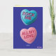 A cute dog Valentine's Day card featuring a Sheltie playing guitar surrounded by candy hearts.