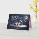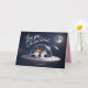 A dog Valentine's Day card featuring a Sheltie couple in a flying saucer going to the moon.