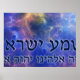 Den första frasen av "Shema"-bön i Hebreiska som läggs ovanpå en bakgrund från flera färg som påminner om universums skapelse. Shema Yisrael, "Hear, Israel", är de två första ord av den viktigaste judiska bön. Den första versen kapslar in judenismens monoteistiska essens: "Hear, O Israel: the Lord is our, the Lord is one, is one,", som återfinns i Deuteronomy 6:4. Observant Judar anser att Shema är den viktigaste delen av bönetjänsten i judendomen och att dess upprepning två gånger om dagen är en mitzvah (religiösa commandment). Det är tradition att Judar säger Shema som sista ord och att föräldrar lär sina barn att säga det innan de går och sover på natten.