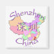 Shenzen av provinsen Guangdong på ett färgat karta i China innehåller de kinesiska symbolerna för Shenzhen och dess placering är märkt på karta med ett hjärta och flagga. En vacker, unik adoptionsgåva till Chinan! Anpassa den med ett namn eller foto också! Designad av Hendrika of RedThreadMaps.com