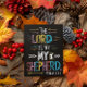 En herde som leder en fårflock genom en grönt betesmark, symboliserar vägledning och skydd.