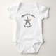 Baby med sheriffbricka och ord "det finns en ny sheriff i stan". Bilden är svart och grått.