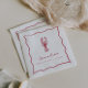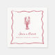 Våra sommarbetonade bröllopsservetter för hummer är perfekta för din strandfirande! Den lekfulla kustdesignen har röda sommarbokstäver och illustrationer på en vit bakgrund. En handritad hummerdoodle sitter högst upp på två rader med anpassad text, allt inom en vågig scallop-doodel-ram. Visas med "she's a catch" och den blivande brudens namn.
