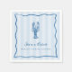 Våra sommarlobin bröllopsfest servetter är perfekta för din strandfirande! Whimsical kustdesign har sommarbetonade medelhavsblå bokstäver och illustrationer på en blekblå cabana-randig bakgrund. En handritad lobb doodle sitter ovanpå två rader med anpassad text, allt ramar in av en vågig kammussla doodle-kant. Visas med "hon är en fångst" och den blivande brudens namn.