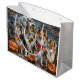 Släpp upp spookandan med den här eerie Halloween-designen med en hundar-förpackning under en mörk, månbelyst himmel, omgiven av flygande fladdermus och glödande pumpor. Perfekt för dem som kärlek en aning skrämmande roligt med sina hårigets vänner!