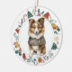 Den här söta Helgdag har en vattenfärgsbild av en söt Shetland Sheepdog-marionett som är klädd i hans vintersötare. Bilden är inramad i en färglös krans som består av olika Helgdag, inklusive snögubbe, klockor, candy cane, strumpor, holly och mycket mer! Baksidan av dekoratet har samma utandningsbild med anpassningsbarna i grönt, guld och rött.