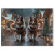 Denna festliga design fångar den glada känslan av högtidssäsongen, med en bedårande hund.Som ligger i en vintersaga, komplett med ett dekorerat julgran, och vackert inslagna presenter. Snöflingor faller försiktigt, vilket ger en magisk touch till scenen, medan de levande färgerna på högtidsdekorationerna skapar en varm och glad atmosfär.