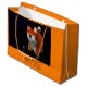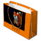 Original och unik design med en Shiba Inu-valp i 3D Digital Art. Design på anpassadet med stor presentväska med orangens bakgrund. Finns i andra storlekar och med svart bakgrund. Matchande fyrkantiga och runda klistermärken, hälsningskort, vykort, porto och annat.. Perfekt för kinesiska eller vietnamesiska nyår under Hund 2018 eller födelsedagen (människor födda under Hund år). Du kan enkelt ändra text (teckensnitt, storlek, färg och placering) genom att klicka på anpassningsknappen.