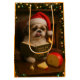 Individually designed Christmas gift bag featuring a really cute Shih Tau dog reading a book entitled 'Cheese Tax at Home Regulations 2025'.