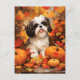 En färgrik höst och tacksägelseporträtt av en Shih Tzu.