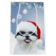 Svartvita universitetslärare för shih tzuhund en Santa hatt som ska fås upplagd för gåvan för helgdag för helgdagarhund älskarejul, hänger lös