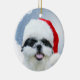 Svart och vit Shih Tzu i en julhatt och en vinterbakgrund hundälskare keramiska julprydnadsföremål