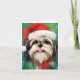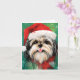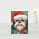Färgfull och glatt juldesign med en Shih Tzu som bär en julhatt.