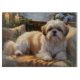 En kultiverande helgdag med fredligt hund vid ett fönster, omgiven av glödande ljus. Denna mysiga och festliga utformning fångar säsongens anda, perfekt för att lägga till värme och charm i alla utrymmen. Perfekt för hundälskare och helgdag dekorentusiaster.