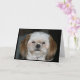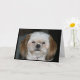 En extrem närbild på en söt, vit Shih Tzu-valp är motivet för mitt "Shih Tzu önskar er en riktigt lycklig årsdag!"-kort.