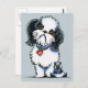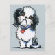 Uttrycksfull teckenillustration av en svartvita Shih Tzu med björnleksaken av Andie, illustratör och skapare av Av-Koppel konst.