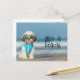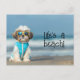Shih Tzu-valpen med solglasögon på stranden. Ett vykort för roligt. Meddelandet "Livet är en strand!" kan tas bort eller ersättas med ditt eget meddelande.