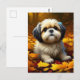 Shih Tzu-valp leker i höstlöv Vykort