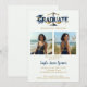 The design is intended for graduates and their families who seek an invitation that combines style, distinction, and personality. Perfect for those who want a sophisticated aesthetic with a contemporary touch, this invitation communicates emotion, pride, and celebration, connecting with those who value elegance and attention to detail. The combination of navy blue and gold shimmering effect, along with the watercolor effect and customizable photos, provides a visual experience that appeals to both young graduates and their families, making each invitation meaningful and memorable.