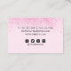 Shimmery rosa glitter stoft lägger till den mjuka rosans bakgrund. Din kontaktinformation, inklusive mobil, e-post, webbplats och social-medieferens, finns på baksidan. Klicka på knappen Pesonalize för att lägga till information. Du kan anpassa dig ytterligare genom att klicka på länken "Klicka för att anpassa ytterligare" grund i rutan Anpassa och använda designen verktyg för att ta bort ikoner för social-media som du inte användor och flytta ikoner om det behövs.