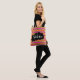 En söt väska med en elegant mönster som består av rosa, orange och guld (faux) metallisk rand. Överst är en svart splotch som säger "Shine On" i ett teckensnitt för trendiget finare, med en illustration av en vit romb.