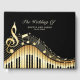 Svart och guld illustration av en musik i tangentbord med anteckningar och klara och gyllene stjärnor