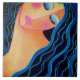 Min vackra abstrakt digitala målning av en kvinna med glansigt svart hår tryckt på keramiskt plattor