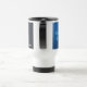 En moderniserande, metallblå modell mot en mörk, nattlig bakgrund. Två av hebreiska brev hittades på en dröm, nunna och shin, glöd. Texten "Lycklig Hanukkah" står också i blått och vitt.