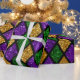 Shiny grönt, lila och guldglittrande plattor, diamanter, mönster med tomt utrymme för kopiering, utrymme för text. Mardi Gras helgdag poster bakgrund.