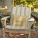 Faux shiny guld glitter med gnistor mot en grafisk bild av den gyllene gulten i metall som är täckt av fläckar på ett anpassade utomhus dekorativ kudde. Det svarta och vita kalligrafteckensnittet finare stil i namn och monogrammet i mitten kan anpassas. All sparsam och glansig inslag i denna moderna gigantiska design är digital grafik. En lyx för din dotters födelsedag.