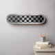 Snätt utseende på borstat metall lagrar, sedan en lagrar av svarta och genomskinliga fyrkanter som schackbräde. Sedan ser samma borstad glansig metall trim ut runt däcket. Fyra tillgängliga dekstorlekar, det här är störst.