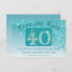 Skicka en snyggt "Spara datumet" till dina vänner och familj för din 40:e födelsedag med det här moderna tealblåa glitter som faller på sidan av en tealbakgrund.