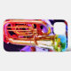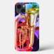 En vacker, glansig borstknut, den största av släktet, med det lägsta klivet. Tuba är rak och bandet lutas. Det här är en tenor tuba. I marschbanden i Förenade kungariket kallas tuba-spelaren för basspelaren. Om personen är en tubspelare i en orkester. I Förenade Stater är han eller hon en tubist eller tubaist. Ord är faktiskt latinskt för "trumpet". Patent för baser och kom av tenor tubas från Tyskland (dåvarande Preussia), där baserna utvecklades 1835 och tenor tre år senare. Tubas består i allmänhet av mässa, en kombination av tenn och koppar, som skapar ett varmt mjukt hölje när det poleras. Underbar design för musiker, musiker, älskare, alla som går in i stora band, sving, jazz, mässinstrument, instrument för vind och oompah oktoberfest polka musik! Ja, Wohl! Även om marschbandet i den här bilden faktiskt var portugisiskt, från Montreal. De kunde sten! Coola shiny tuba-foto av Sylvia Chaume, Kanada.