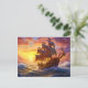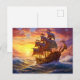 Ship in Golden Sunset Storm Fantasy Painting Vykort