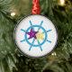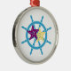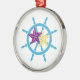 Blue shipwheel with a yellow and purple starfish for a cute nautical vibe.