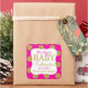 Guld-glitter-utseendet och shock rosa-bakgrunden, modern babyduschpresentetikett.