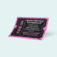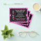 Anpassa texten på båda sidor om den här shock rosa och den svarta biljett-flygaren, underbar för en nattlig klubb, party, DJ eller dansarrangemang! Använda det som ett inträdestillstånd för biljett för ett visst antal överföringar eller ändra texten till ett VIP-biljett. Fantastisk biljett-flygare för ett band eller en musiker för att marknadsföra en konsert, en flickas sweet sixteen, en feminin födelsedagsfest bash eller för vilken använda som helst. Den har svart och vit utskärningsdesign med strålar i bakgrunden. Finns i andra färg och stilar