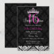 Shock rosa Black Damask & Tiara Sweet 16-inbjudan Inbjudningar