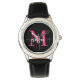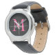 Shock rosa Black Modern Script Girls Monogram Namn Armbandsur